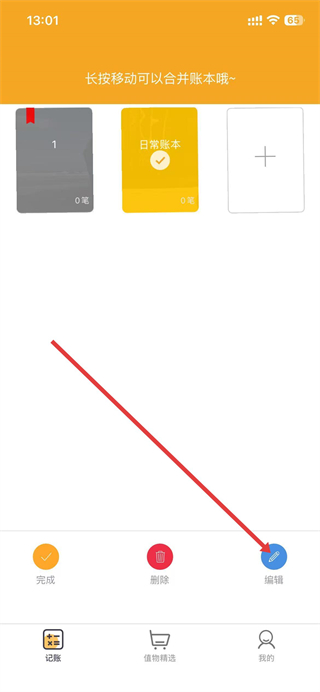 2、进入该账本界面后,选择并长按需要修改名称的账本。