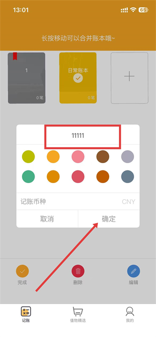 4、输入新名字,点击确定按钮,即可完成账本名字的修改。