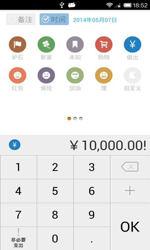 在添加记录的时候,还有一个“非必要支出”按钮,躲手党们可以考虑。