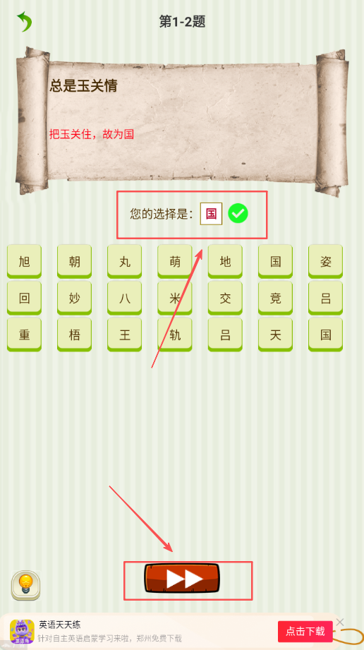 3、输入答案验证正误查看解析学习造字规律知识,提高文字认知能力和文化素养水平进步。