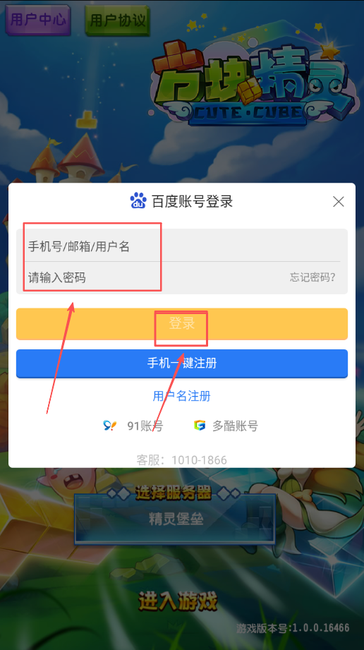 2、打开游戏进入登录页面,输入已注册的手机号和密码后点击登录按钮即可进入主界面。