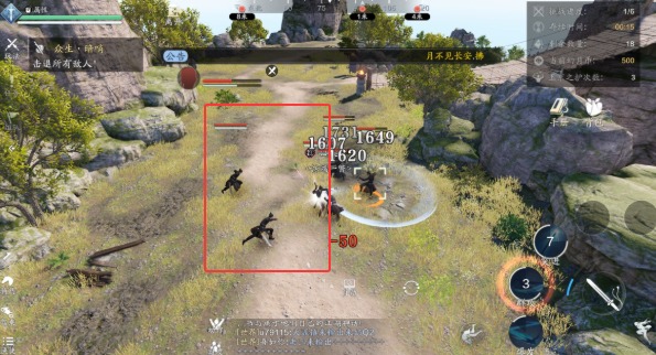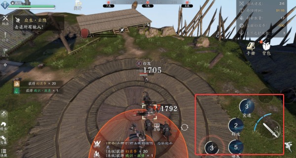 2、第二波敌人会出现在高台上,这回多了放冷箭的弓手,看到地上闪红框赶紧躲开,那是箭雨落下来的位置。