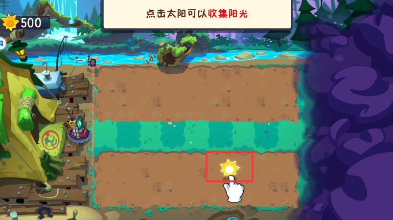 2、点击从天而降的太阳符号收集能量,阳光值是种植各类防御植物的必需资源。