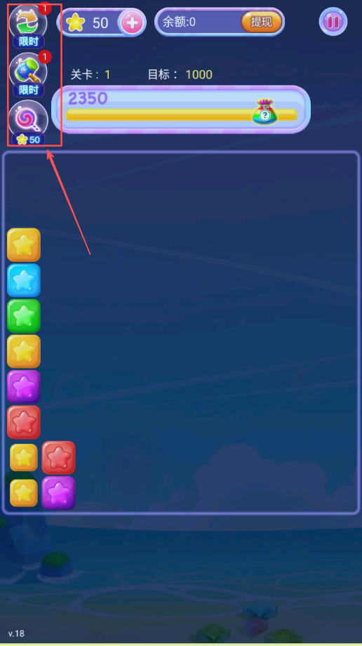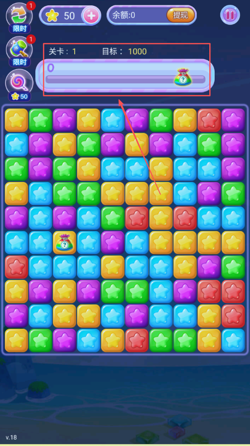 1、进入游戏选择开始挑战准备进行消除任务体验过程,熟悉操作界面和基本功能布局设计特点。