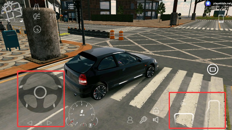 4、通过左侧虚拟方向盘精确控制车辆转向,右侧踏板区域分别控制前进与倒车功能。