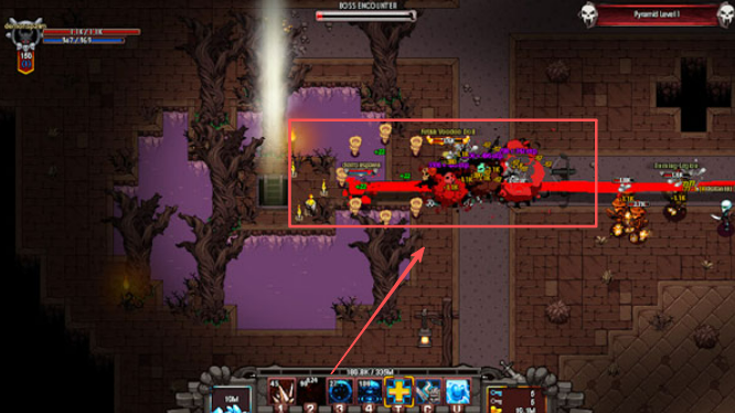 地图中随机散落了瓦罐,宝箱等物品,玩家需要搜集金币来购买一些道具,寻找钥匙来开启宝箱获得稀有的武器和能力,更要通过击杀怪物获取经验值来提升自己的特有技能。