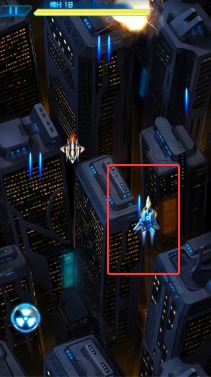 4、左手在屏幕左侧滑动控制战机移动,右手点击发射按钮攻击敌机,注意躲避彩色弹幕。