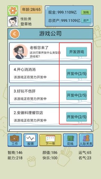2、提供多种职业发展路线与随机事件系统,每份工作对应独特剧情分支,玩家可通过努力从底层奋斗至企业高管,甚至开创家族产业实现阶层跨越。