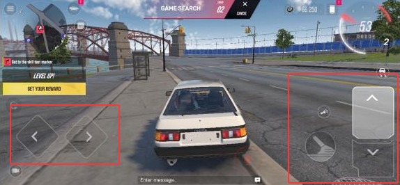 3、左手在屏幕左侧滑动控制车辆转向角度,右侧区域集中了油门、刹车和手刹三个关键按键。过弯时要注意配合使用手刹实现漂移,避免冲出赛道。