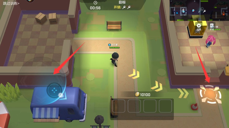 2、通过左侧虚拟摇杆控制角色移动方向,滑动幅度将决定角色的移动速度。
