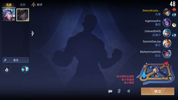 3、在英雄选择界面中,可根据团队阵容需求和个人擅长位置来挑选合适角色。