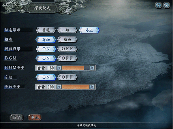 2、根据个人偏好设定游戏参数与操作环境,确认无误后点击决定按钮保存设置。