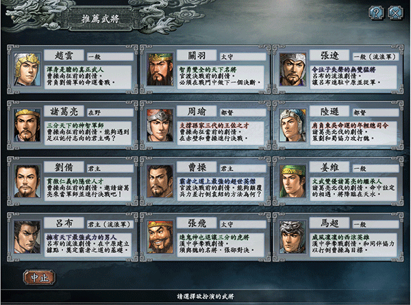 3、收录三国所有能臣名将,有名动天下的刘关张、诸葛、司马等;