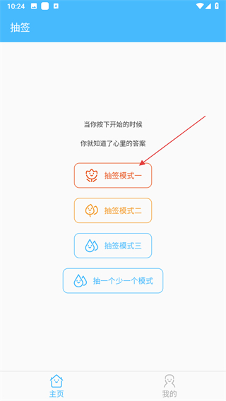 1、打开抽签器APP,在首页点击抽签模式一,进入抽签转盘页面。