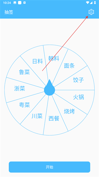 2、在抽签转盘页面,点击右上角的设置图标,进入设置界面。