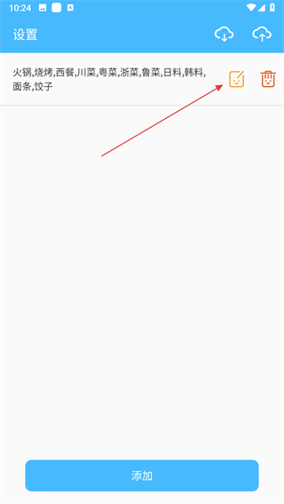 3、在设置界面,点击选项内容旁的编辑图标,进入添加页面。