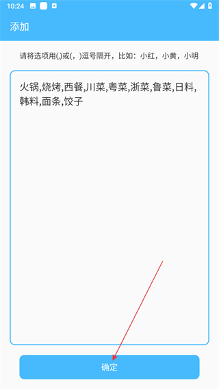 4、在添加页面,在输入框中编辑选项内容,完成后点击确定即可。