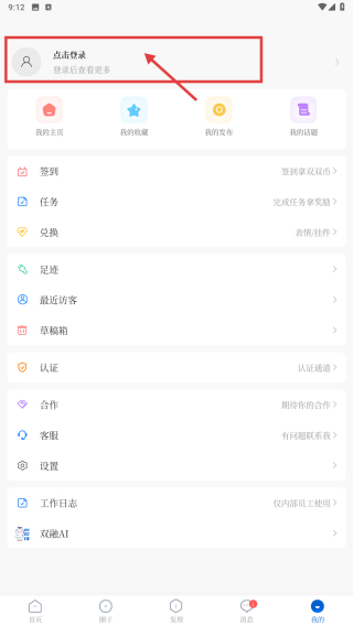 2、在我的页面当中点击点击登录区域,进入登录/注册界面。