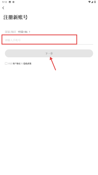 4、在注册新账号页面,输入手机号码后点击下一步按钮,完成注册流程的第一步操作。