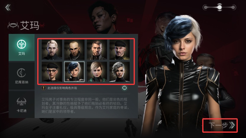 3、确定舰船后进入角色定制环节,可调整外观特征并选择专属职业发展方向。