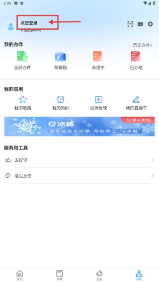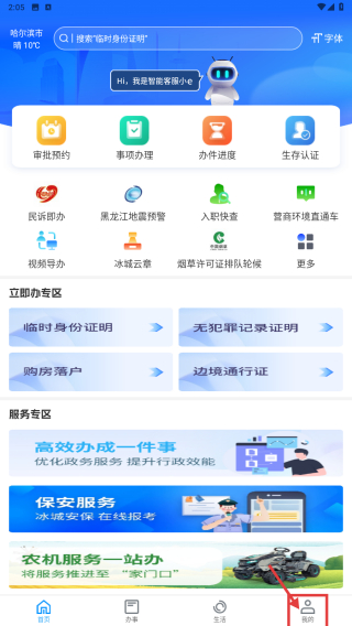 1、打开e冰城政务应用,点击底部我的选项,进入个人中心页面。