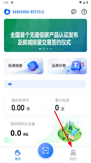 1、打开搭把手回收app,点击底部导航栏中的我的选项。