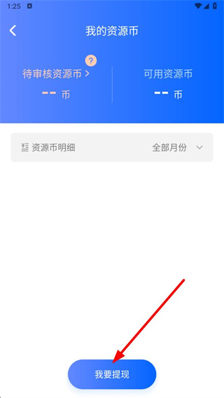 3、进入我的资源币页面后,点击下方的我要提现按钮。