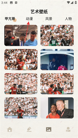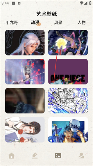 2、在艺术壁纸页面,点击动漫分类,查看动漫类壁纸。