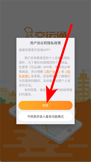 1、打开交运通,在弹窗中点击同意。