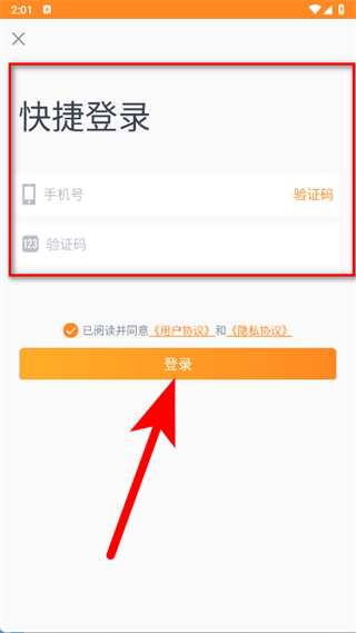 4、输入手机号和验证码,勾选同意协议后,点击登录,完成注册。