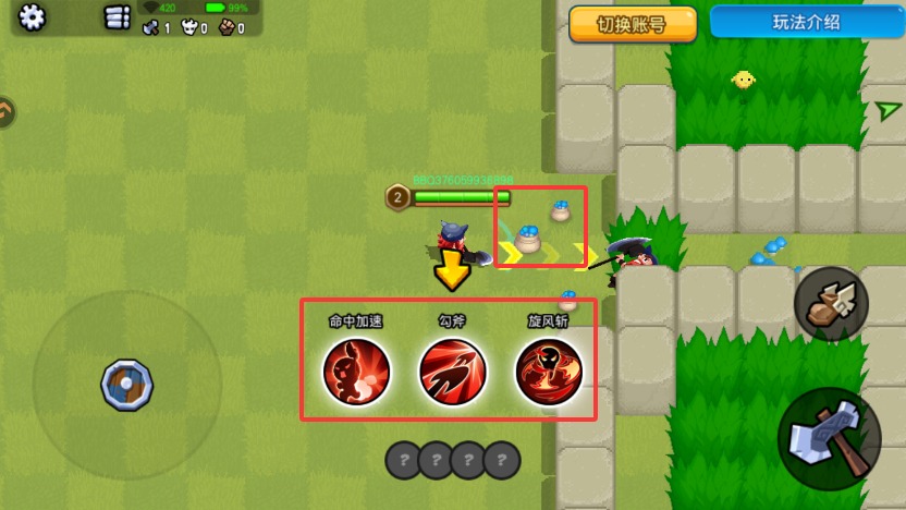 3、遭遇对手时及时点击斧头图标发动猛烈劈砍,连续攻击可积累连击提升伤害输出。