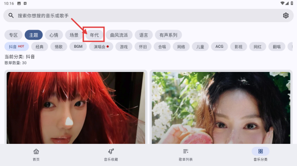 2、在分类页面,点击年代标签,进入年代内容当中。