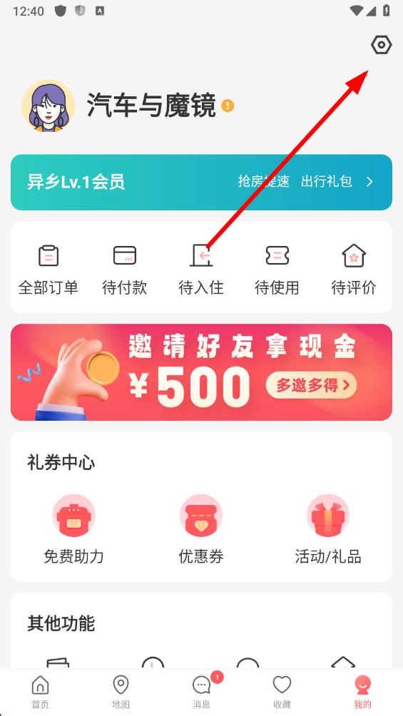 2、在个人界面右上角,点击设置图标,进入设置页面。