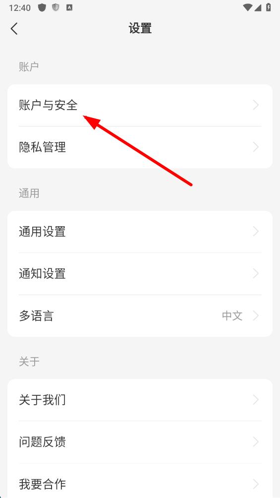 3、在设置页面里,点击账户与安全选项,进入账户与安全界面。