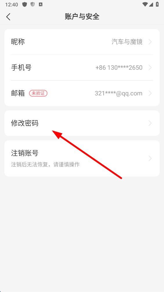 4、在账户与安全界面中,点击修改密码,进入修改密码页面。