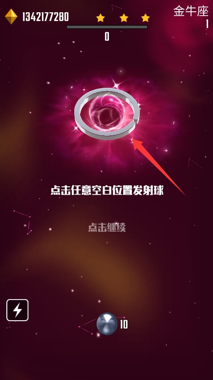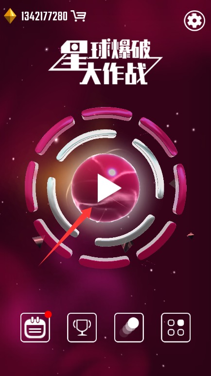 2、点击屏幕任意空白位置发射球体撞击星球,通过物理反弹摧毁所有目标。