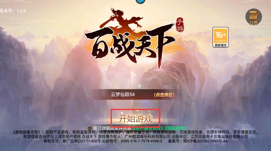 1、启动游戏后首先选择合适的服务器区服,确认选择后点击开始游戏按钮正式进入。