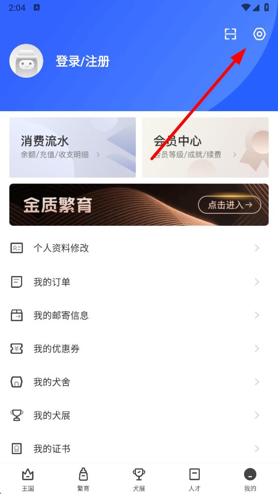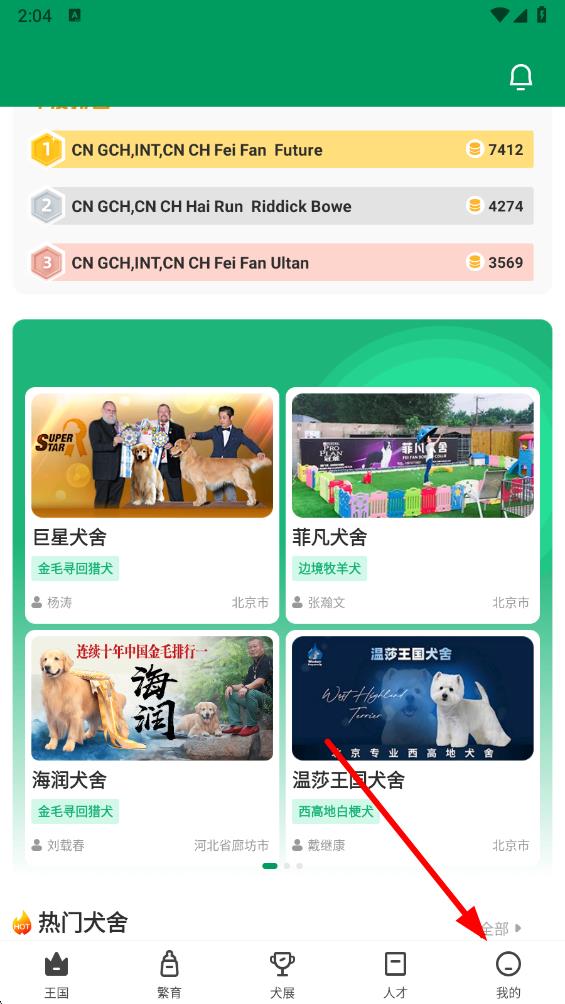 1、打开宠爱王国app,在首页点击右下角我的选项,进入个人中心页面。
