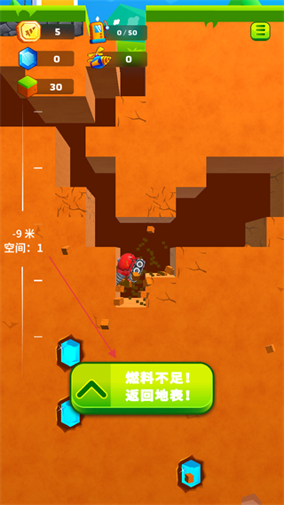 3、当提示燃料不足!返回地表时,及时返回补充燃料。