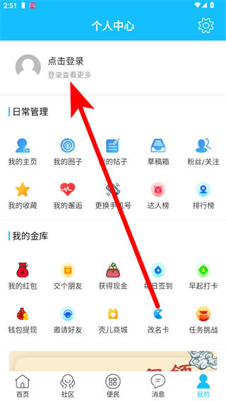 2、在个人中心页面,点击登录。