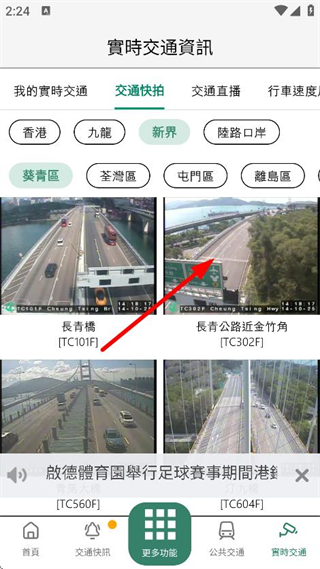 1、在首页,点击實時交通,进入實時交通資訊页面。