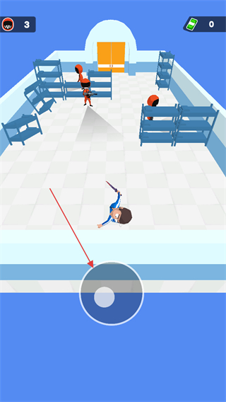 1、进入游戏,通过屏幕下方的虚拟摇杆操控角色移动,靠近敌人。