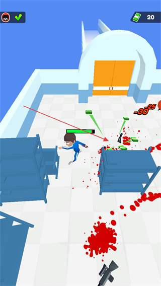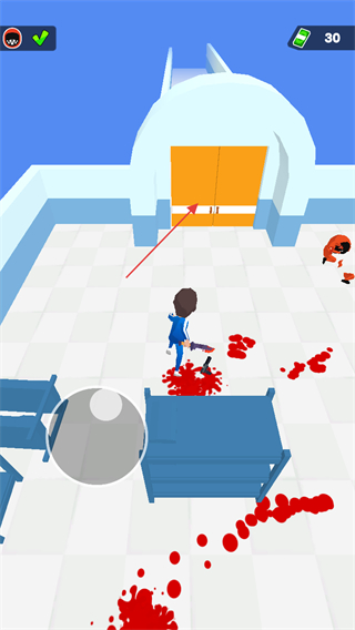 4、消灭场景内所有敌人后,操控角色走向房间尽头的橙色大门,进入下一个关卡或场景。