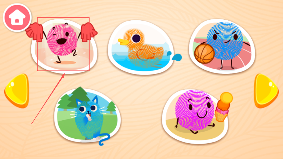 1、选择指纹颜色开始创作,轻按屏幕留下指印。观察指印变化,尝试不同按压力度效果,探索创作规律。