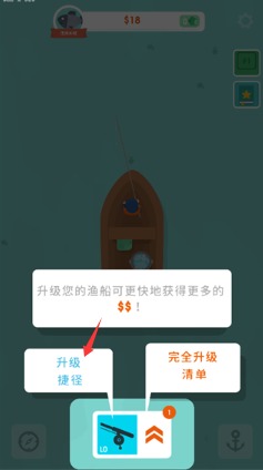 2、当积攒足够资金后前往船坞界面,通过升级渔船引擎与渔网规格来提升单次捕捞效率。