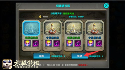 4.联赛冠军开启通天塔【双倍奖励】时间后,增加系统滚屏提示;