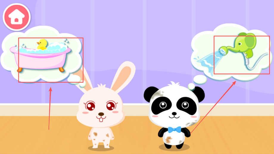 4、在游戏中学习洗澡儿歌,通过音乐加深记忆,让学习更加轻松愉快,增强学习效果,培养节奏感。