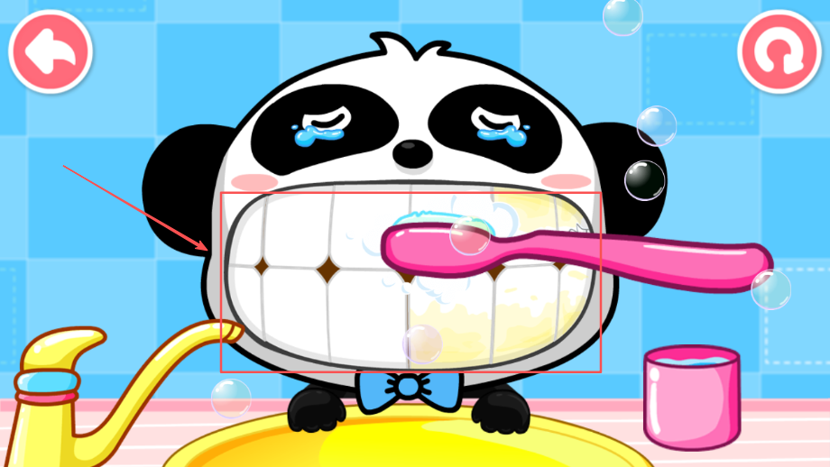 2、根据提示完成刷牙步骤,挤牙膏清理牙齿蛀虫。
