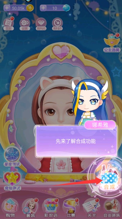 1、启动游戏后点击合成功能,即可进入充满魔法气息的美发设计的工作室。