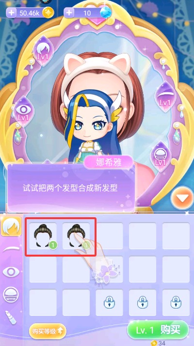 3、将两个相同等级的发型放入合成栏,通过魔法融合生成更高级的全新发型。
